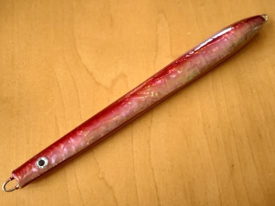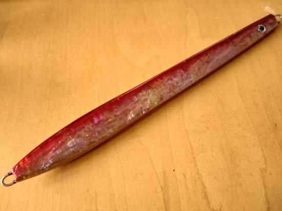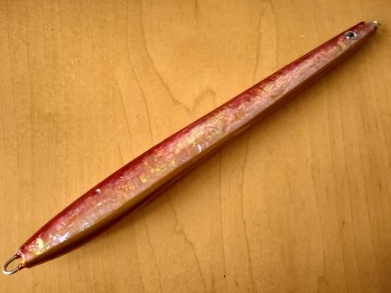 ジョーカー500g赤金をベースにして日本アワビを張りました。画像では分かりにくいですが、実物はアワビが輝いています。ジョーカー420gでは流される潮が速い時にお使いください。